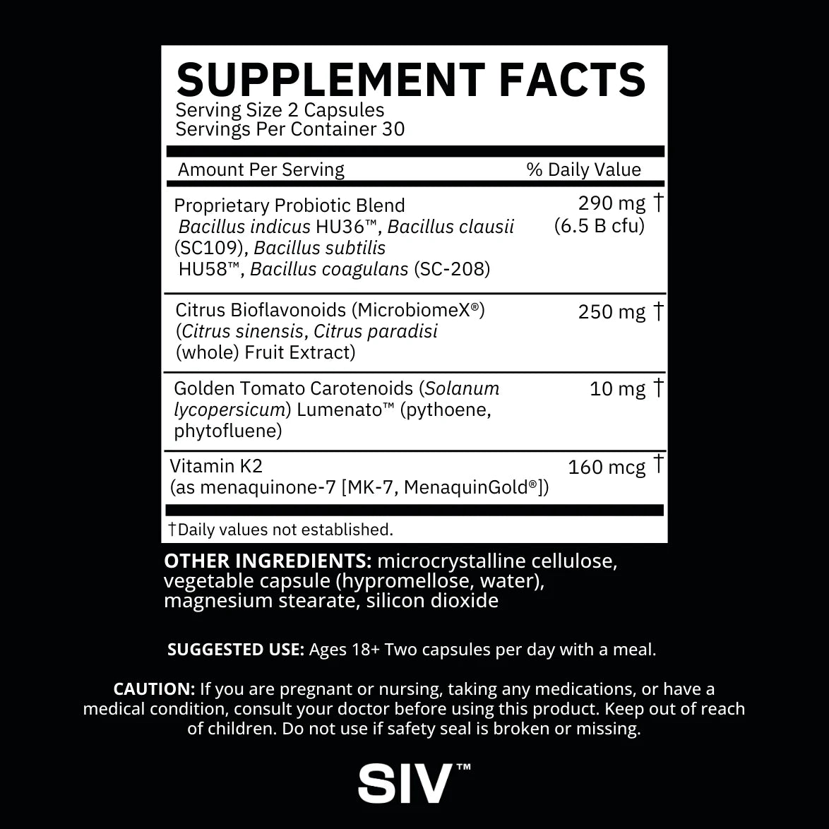 A probiotic-powered skincare supplement designed to support the gut-skin axis and overall skin microbiome. SIV Biome Balance Within is formulated with a powerhouse combination of spore-based probiotics, antioxidant carotenoids, citrus polyphenols, and vitamin K2 that target the gut-skin axis for visible change in your skin’s tone, texture, and resilience. This product supports a hydrated, firm complexion, promotes resilience to UV and environmental stressors, and helps smooth non-cystic acne blemishes for lasting clarity.